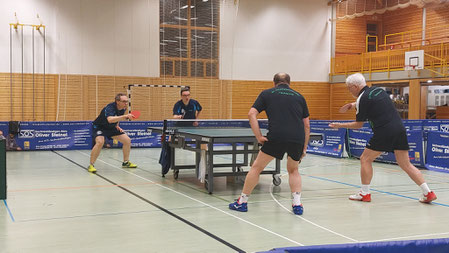 Wolfgang Benner musste sich im ersten Spiel in drei Sätzen Christian Denig geschlagen geben. Spannender verlief das zweite Einzel zwischen Lothar Schindler und Michael Vetter. Dabei konnte Lothar sogar mit 2:1 in den Sätzen in Führung gehen, musste sich dann aber letztendlich im fünften Satz in der Verlängerung unglücklich geschlagen geben.
